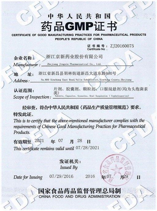 8月5日,公司顺遂拿到省食物药品监视治理局出具的药品GMP证书,这是公司头孢固体制剂车间继2011年首次通过新版GMP认证后的复认证。