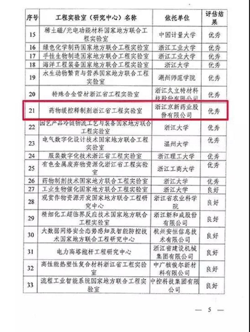 克日,凭证《省生长刷新委关于宣布省工程实验室(研究中心)建设及运行情形评估效果的转达》中,省发改委宣布了对全省73家工程实验室的评估效果,公司药物缓控释制剂浙江省工程实验室获评省级优异,为全市唯逐一家获评省级优异工程实验室。